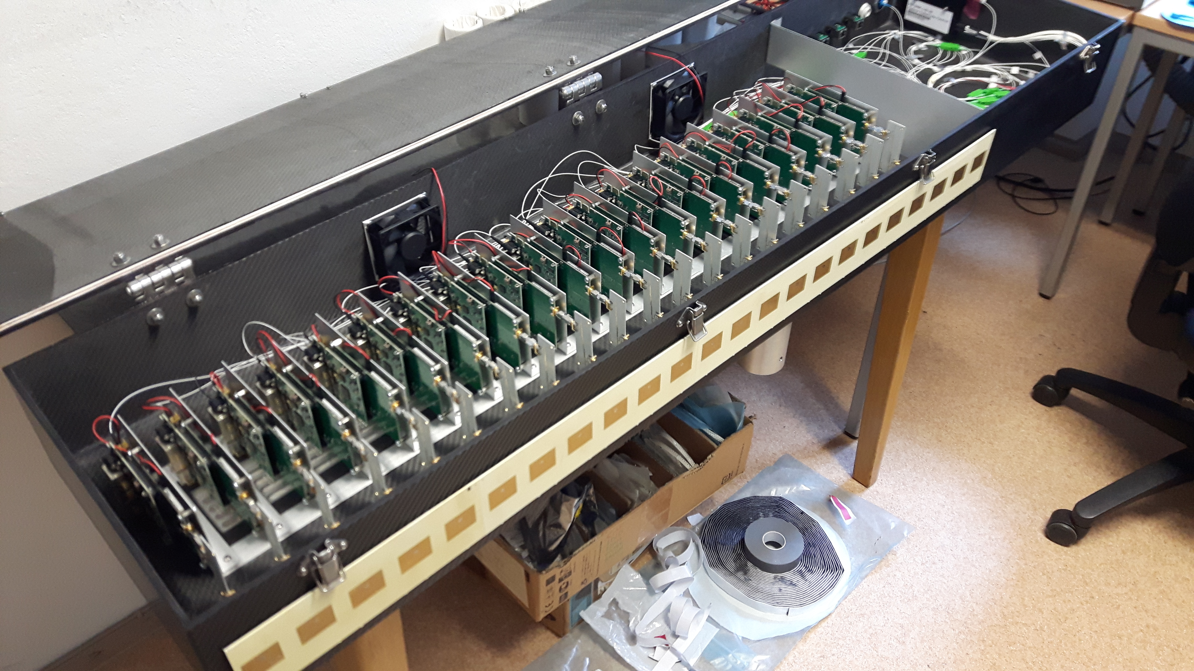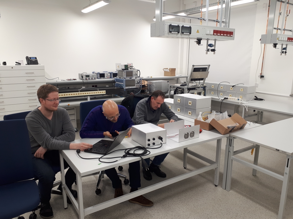RANGER partners are implementing the photonic enhancements namely, the optoelectronic oscillator and the fibre-optic distribution network, from LEONARDO together with the electrical components prepared by TUD.In this frame, they are testing the functions of all the components in a first complete integration of the photonically enhanced (PE)-MIMO system.